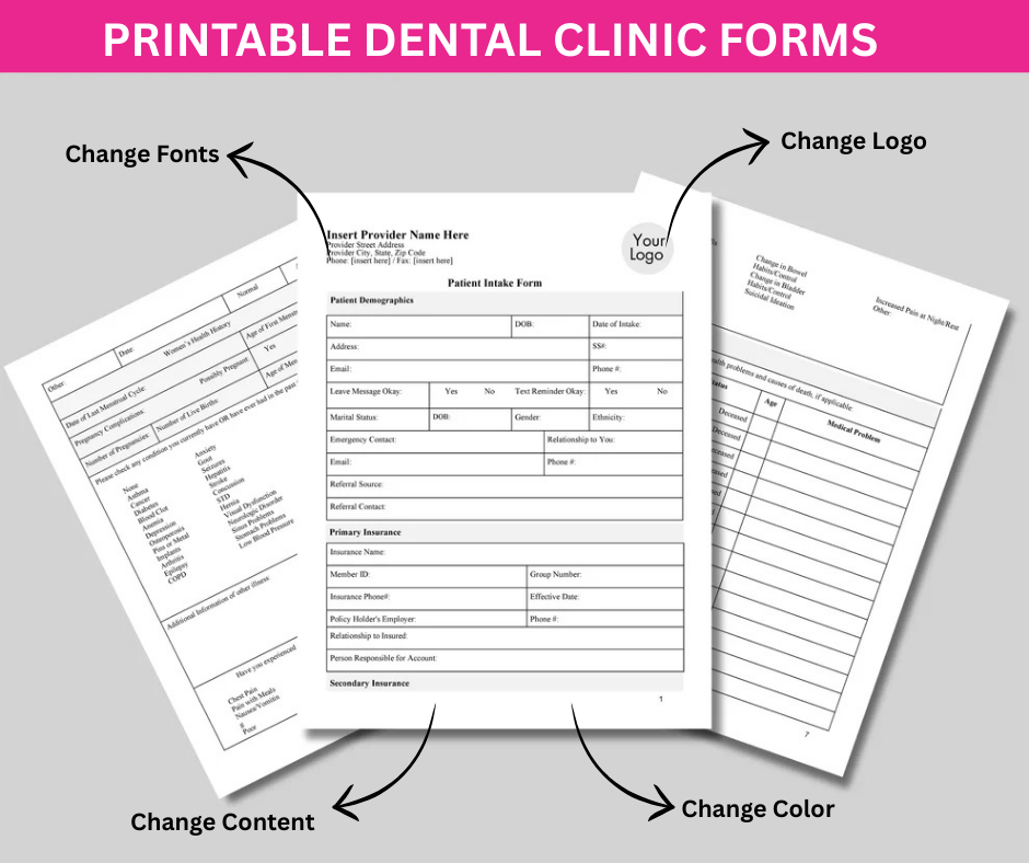 Dental Clinic Forms 100% Editable Font, Color & Text